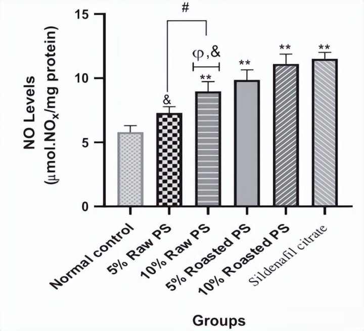PDE-5酶是一种负责传递生理信号的关键分子,它影响组织器官的功能,尤其在血管舒张、平滑肌松弛中起核心作用。若PDE-5酶活性过高,会导致关键部位无法充分舒张、血流量不足,进而引发功能困难。然而,试验中的大鼠在补充南瓜籽后,PDE-5酶的活跃度却出现了显著降低,尤其是补充10%生南瓜籽和熟南瓜籽组的组别。